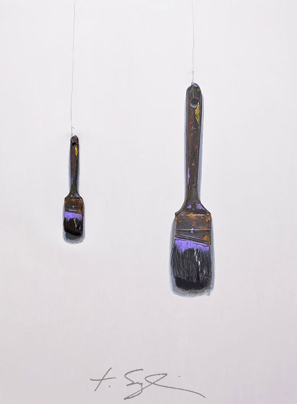 From moody Midwestern landscapes to stoic fruit, Tom Seghi’s art has evolved across decades and styles. His collection spans four distinct genres: landscapes, abstract compositions, fruit and vegetable portraits and playful trompe-l’œil paintings of his own tools. Known for his command of color, form and realism, Seghi invites viewers into a world where everyday subjects are rendered with unexpected intensity and wit.