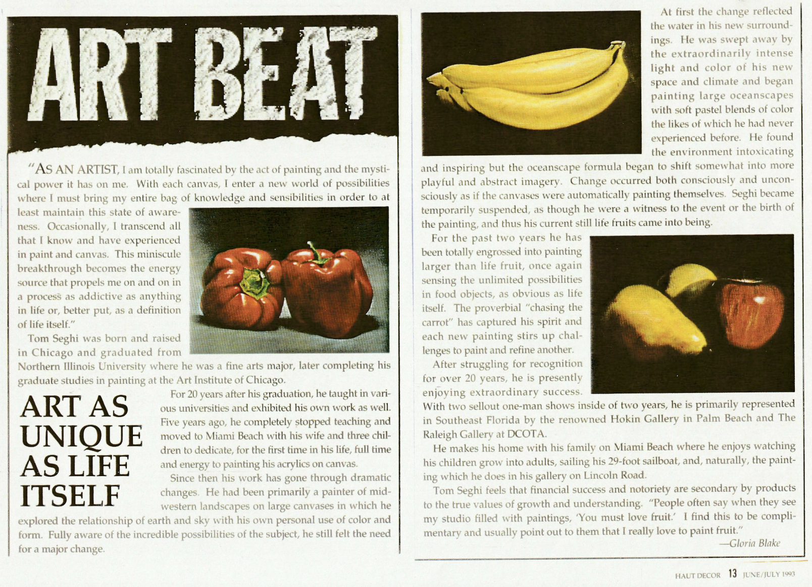 Haut Decor. “Art Beat.” By Gloria Blake. Haut Decor, June–July 1993.