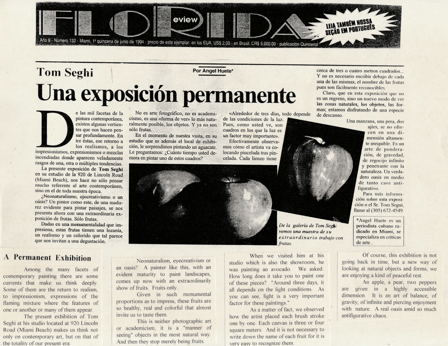 Florida Review. “Una exposición permanente.” By Angel Huete. Florida Review, June 1994, Miami, FL.