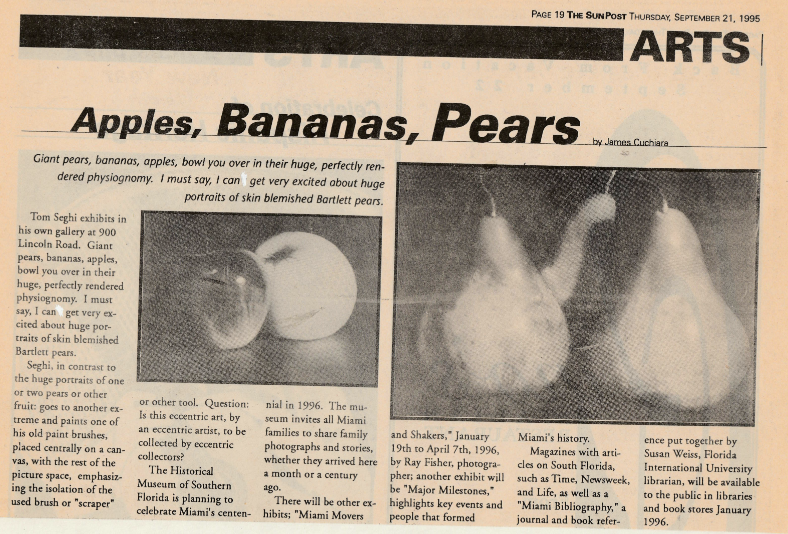 The SunPost. “Apples, Bananas, Pears.” By James Cuchiara. The SunPost, 21 September 1995, Miami, FL.