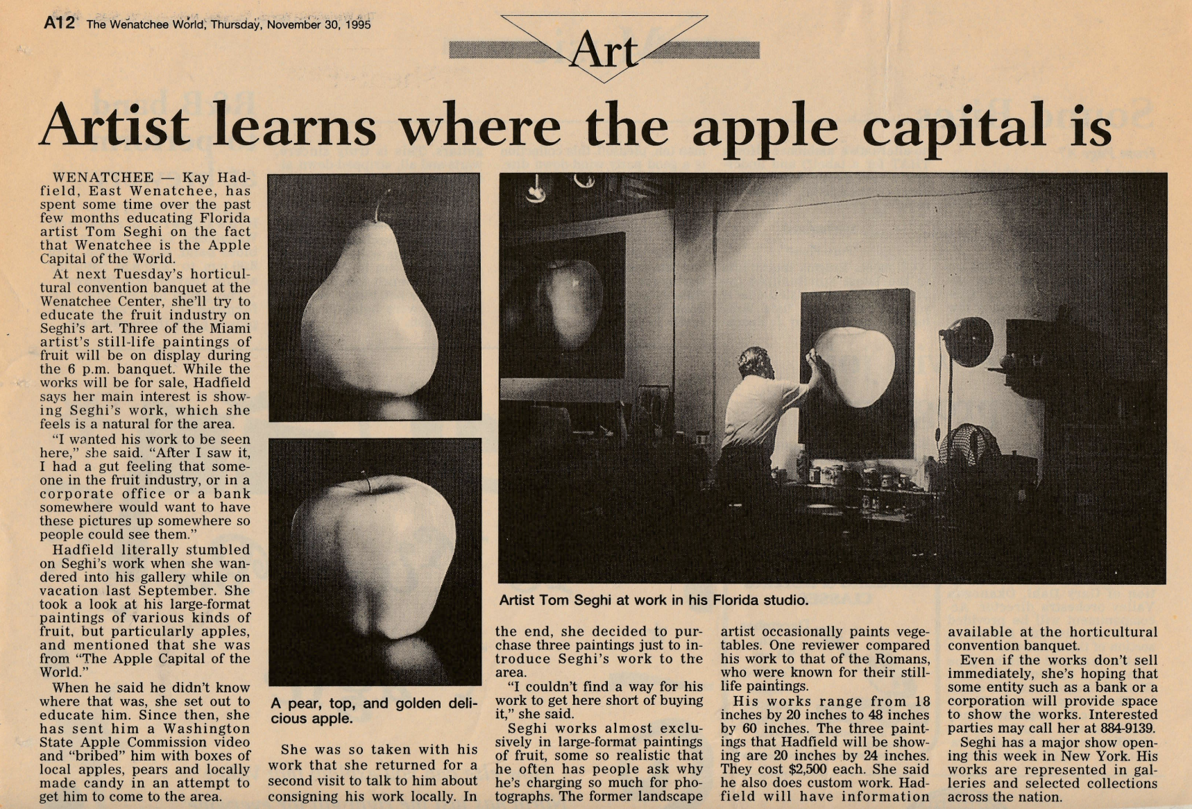 The Wenatchee World. “Artist learns where the apple capital is.” The Wenatchee World, 30 Nov. 1995, Wenatchee, WA.