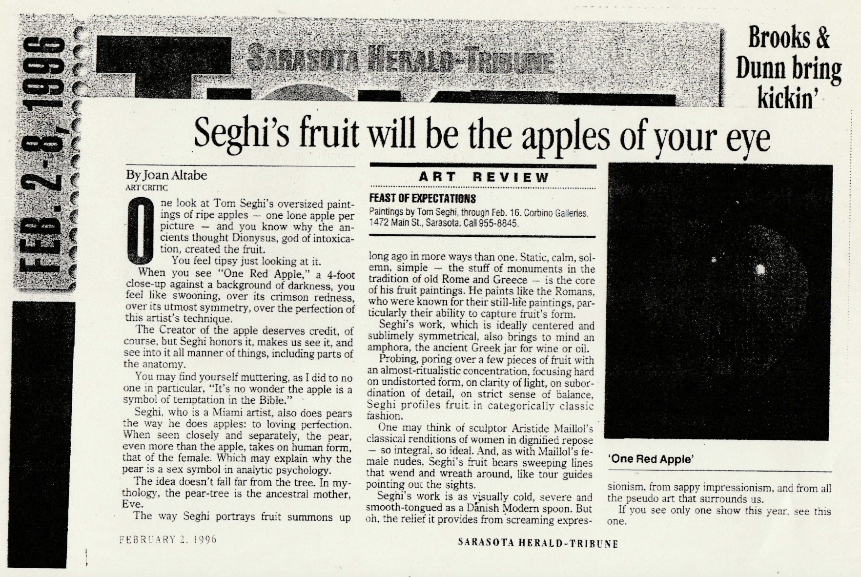 Sarasota Herald-Tribune. “Seghi’s fruit will be the apples of your eye.” By Joan Altabe. Sarasota Herald-Tribune, 2 Feb. 1996, Sarasota, FL.